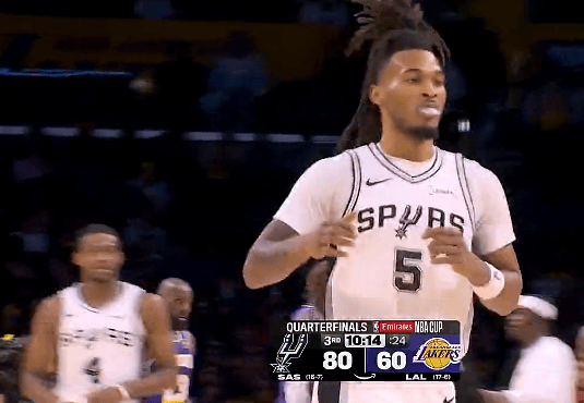 NBA杯四分之一決賽,湖人對陣馬刺的半場(chǎng)比賽正在進(jìn)行中。