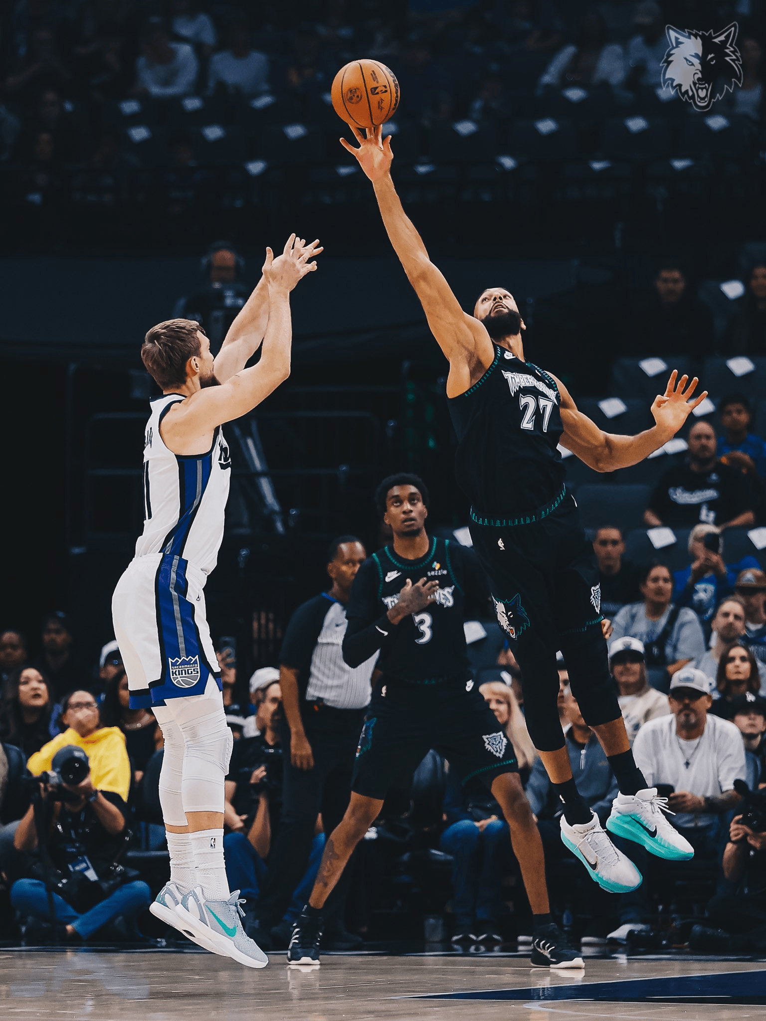 森林狼官方更新社媒,流言林狼狼球分享戈貝爾封蓋瞬間照。板森