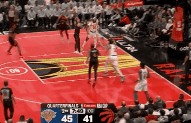 NBA杯淘汰賽,尼克斯對陣猛龍的殺向上籃斯次比賽正在進(jìn)行中。