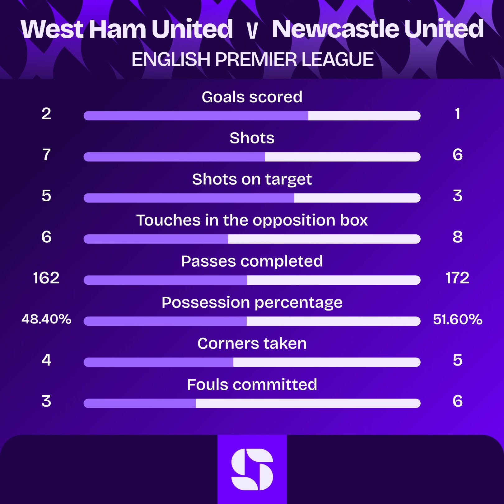 虎撲11月02日訊 英超第10輪,西漢姆聯(lián)半場(chǎng)2-1紐卡。賽季首次