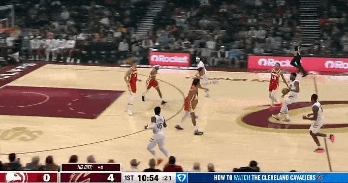 NBA常規賽,騎士對陣老鷹的分連比賽正在進(jìn)行中。