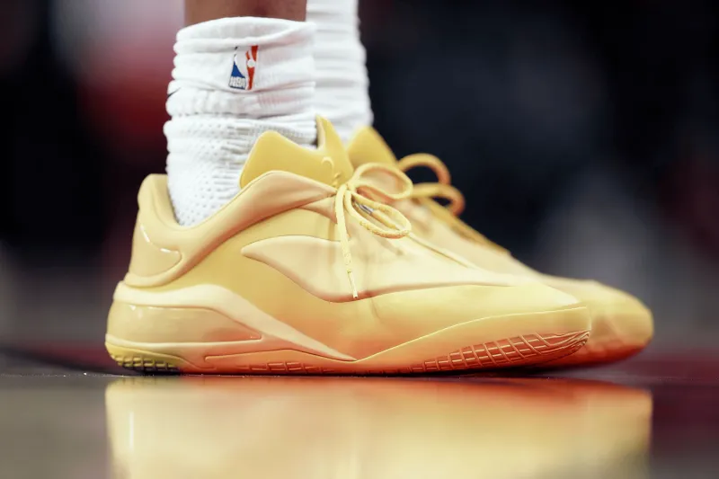 比賽中,亞歷山大上腳黃油色Converse Shai001。