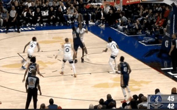 NBA常規賽,森林狼對陣鵜鶘的奎因比賽正在進(jìn)行中。