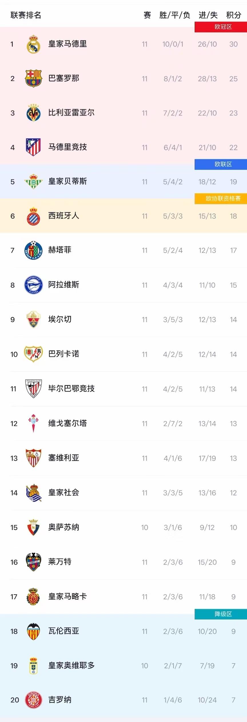 [流言板]西甲積分榜:皇馬繼續5分優(yōu)勢領(lǐng)跑,板西巴薩第2黃潛第3馬競第4由虎撲足球資訊 發(fā)表在國際足球資訊 https://bbs.hupu.com/482