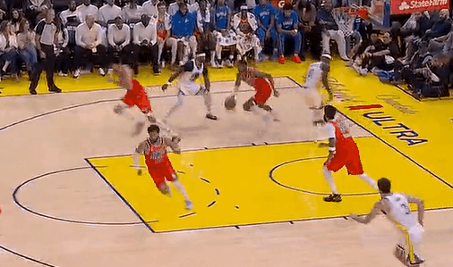 [流言板]巴特勒防守時(shí)右腳掉鞋,肯威反擊上籃打進(jìn)雷霆打停勇士