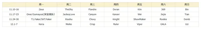 1. 四周每日一期,評選一個(gè)知名選手的招牌英雄,候選池為其生涯使用次數較多,或令人印象深刻的英雄。