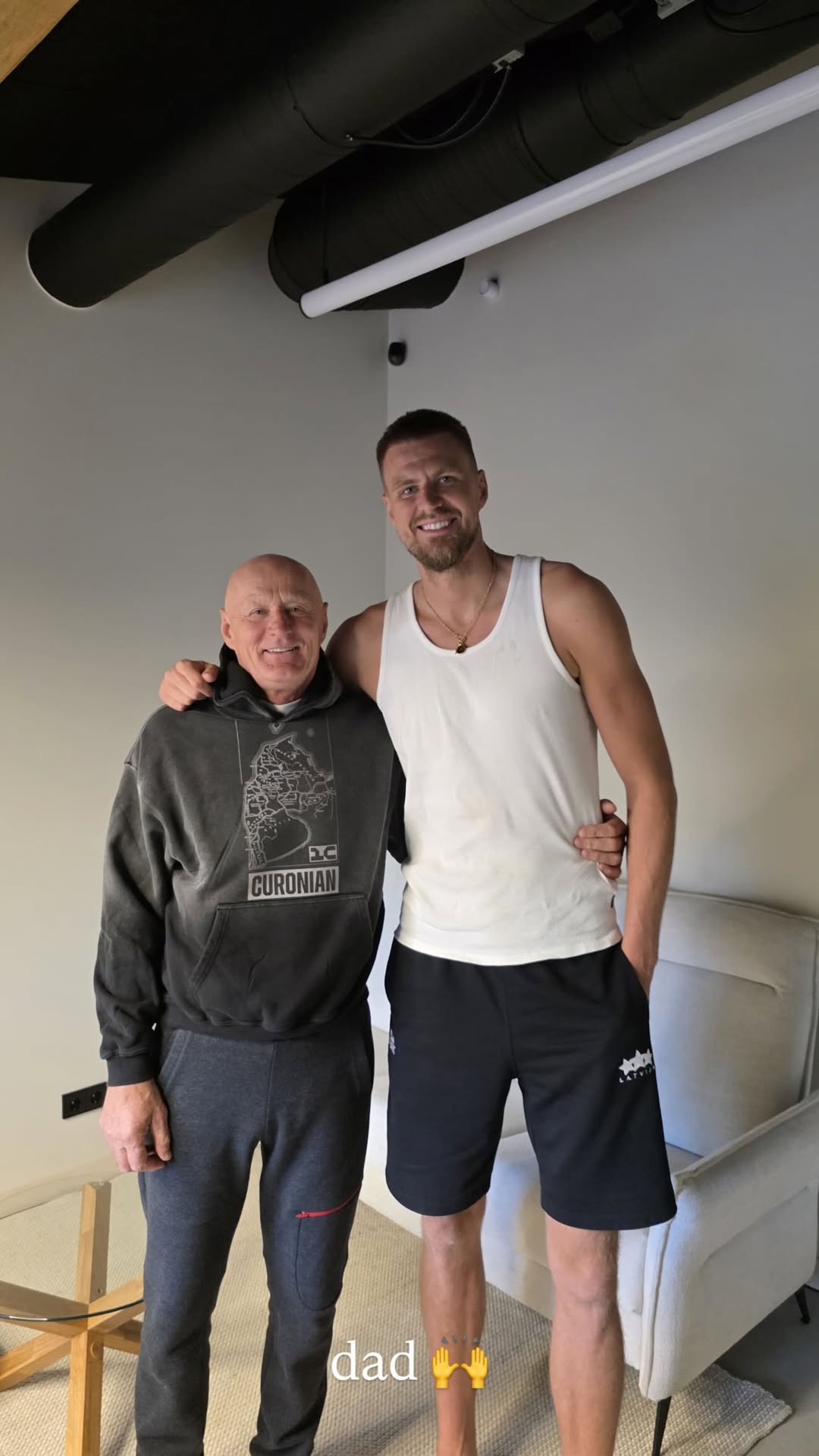 虎撲09月24日訊 老鷹球員克里斯塔普斯-波爾津吉斯更新Ins,曬出一張和父親的爾津合影與球迷分享。