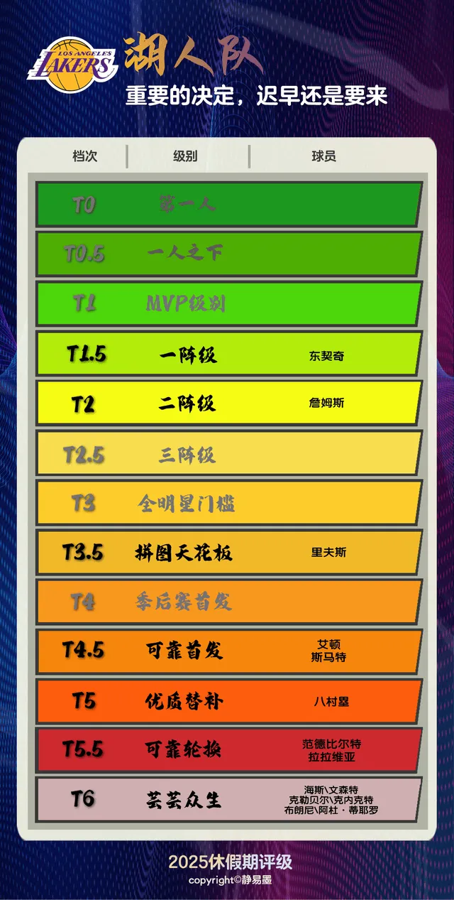 東契奇+“?”。這個(gè)版本暗示了,會(huì )有一個(gè)高水準的第二球星在未來(lái)等著(zhù)湖人。如我們前文所說(shuō),你不知道誰(shuí)會(huì )出走,什么樣的方案在醞釀,但它可能以意想不到的方式發(fā)生。如果是這個(gè)路線(xiàn),25-26賽季就沒(méi)必要搞大動(dòng)靜。