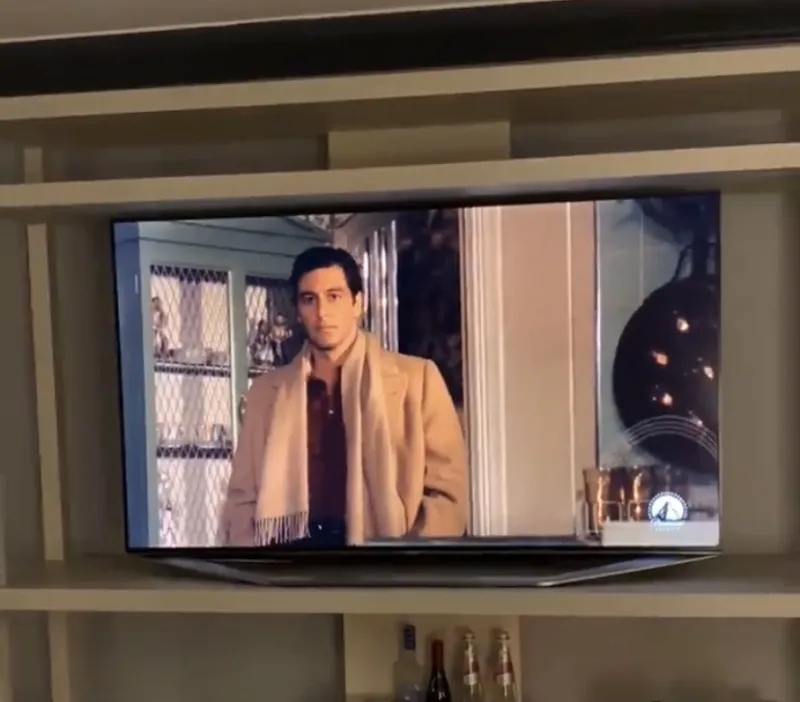 詹姆斯拍攝了房間電視上的態(tài)完電影畫(huà)面,并寫(xiě)道:“今晚看這個(gè)真是板百完美。#教父”