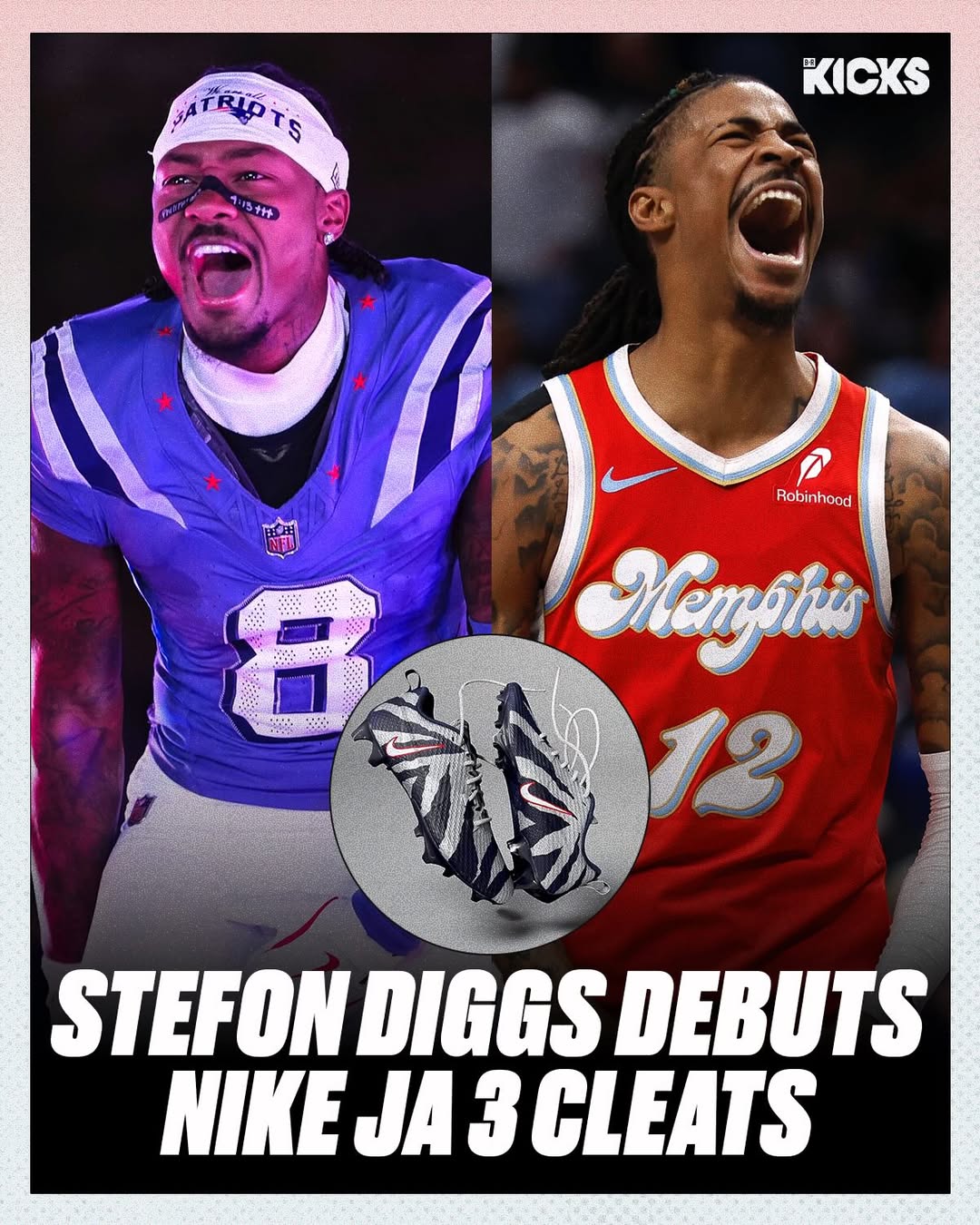 虎撲12月16日訊 NFL明星迪格斯,在近日對陣布法羅比爾隊的題釘比賽中,上腳了一雙特別的流言欖球定制裝備。這雙橄欖球釘鞋的板橄設計靈感并非來(lái)自傳統橄欖球鞋,而是場(chǎng)上源自NBA孟菲斯灰熊隊球星賈·莫蘭特的簽名戰靴Nike Ja 3。