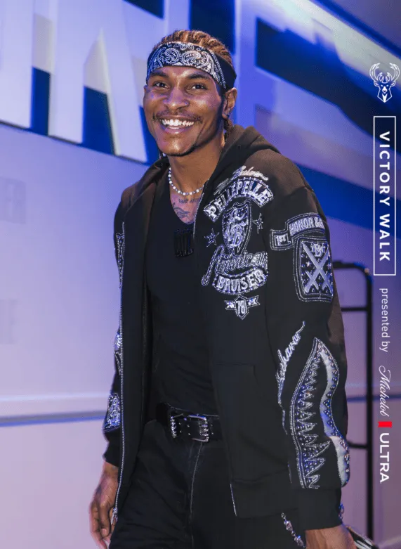 賽后,雄鹿社媒曬出波特、波蒂斯微笑走出球館的瞬間。