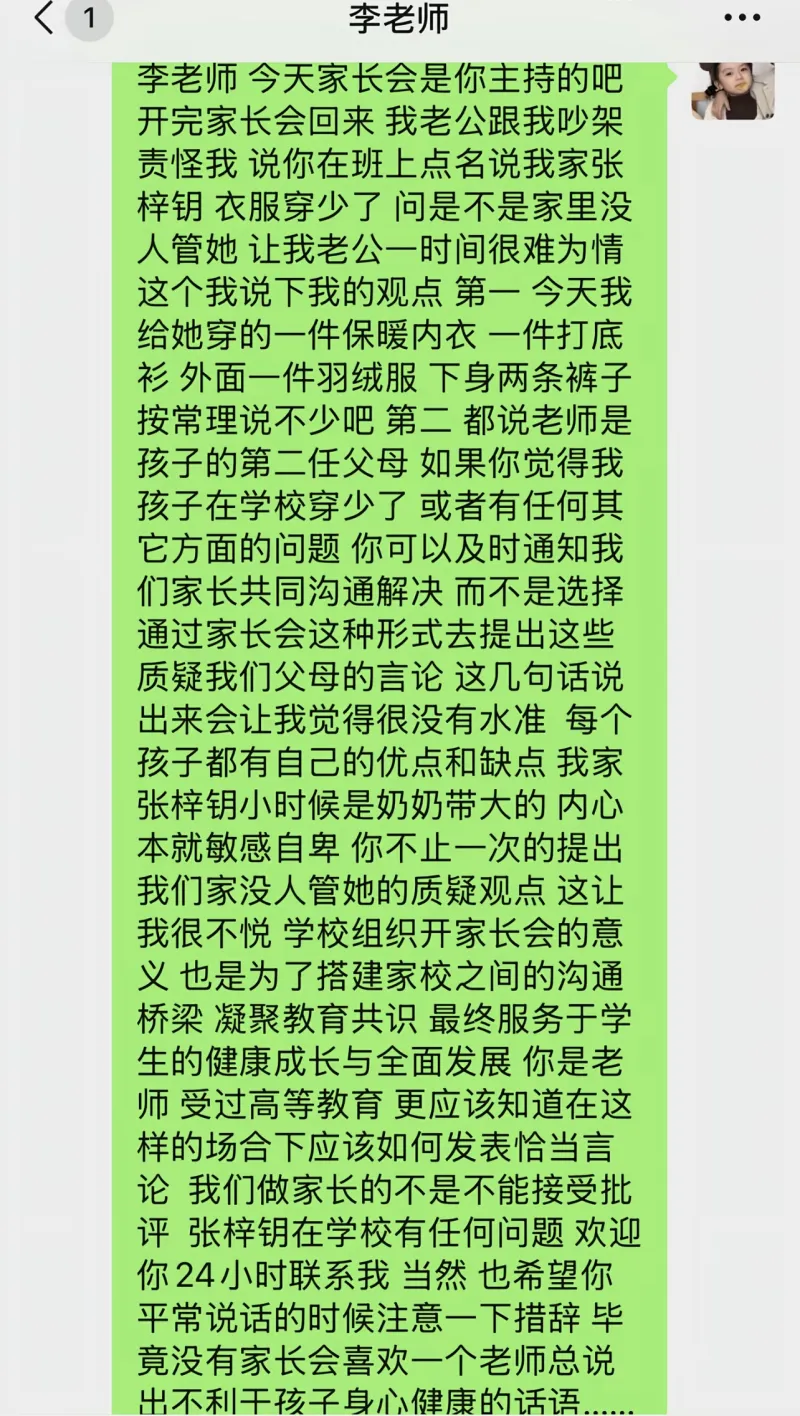 老師家長(cháng)會(huì )提醒家長(cháng)學(xué)生衣服穿少了,家長(cháng)發(fā)抖音怒斥老師:沒(méi)有家長(cháng)會(huì )喜歡一個(gè)老師總說(shuō)出不利于孩子身心健康的話(huà)。