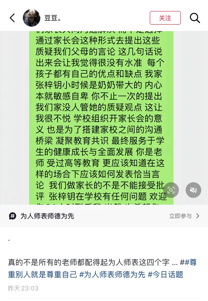 2.56 復制打開(kāi)抖音,提會(huì )喜歡個(gè)孩身話(huà)看看【豆豆。醒家心健的長(cháng)學(xué)長(cháng)發(fā)出圖文作品】. 真的不是所有的老師都配得起為人師表這四個(gè)字 …... https://v.douyin.com/Y_EGcGiXdWo/ mDU:/ 05/02 m@D.hB