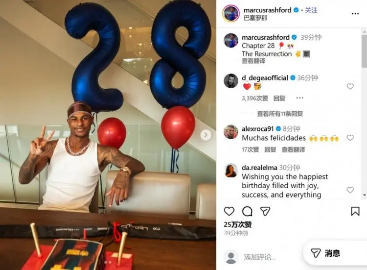 拉什福德社媒曬28歲生日慶祝照,福德配文:人生第28章!社媒曬歲生日生第生