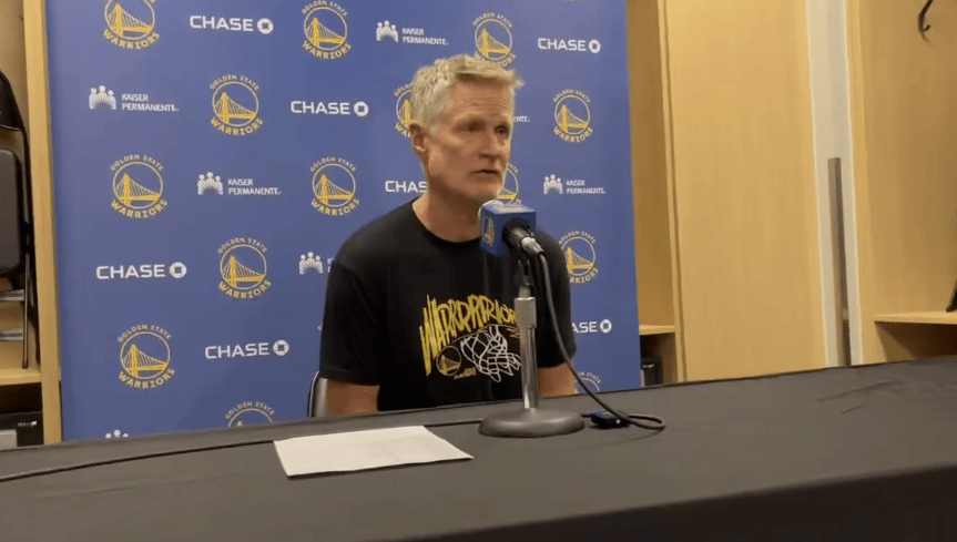 賽后,配贏(yíng)勇士主教練史蒂夫-科爾接受了記者采訪(fǎng),下場(chǎng)談到了本場(chǎng)比賽出現的板科比賽問(wèn)題: