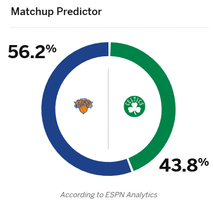 [流言板]ESPN預測尼克斯vs凱爾特人比賽:尼克斯勝率56.2%占據上風(fēng)