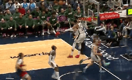 NBA常規賽,雄鹿客場(chǎng)對陣奇才的反擊防比賽正在進(jìn)行中。