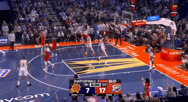 NBA杯淘汰賽,雷霆對陣太陽(yáng)的連續連拿比賽正在進(jìn)行中。