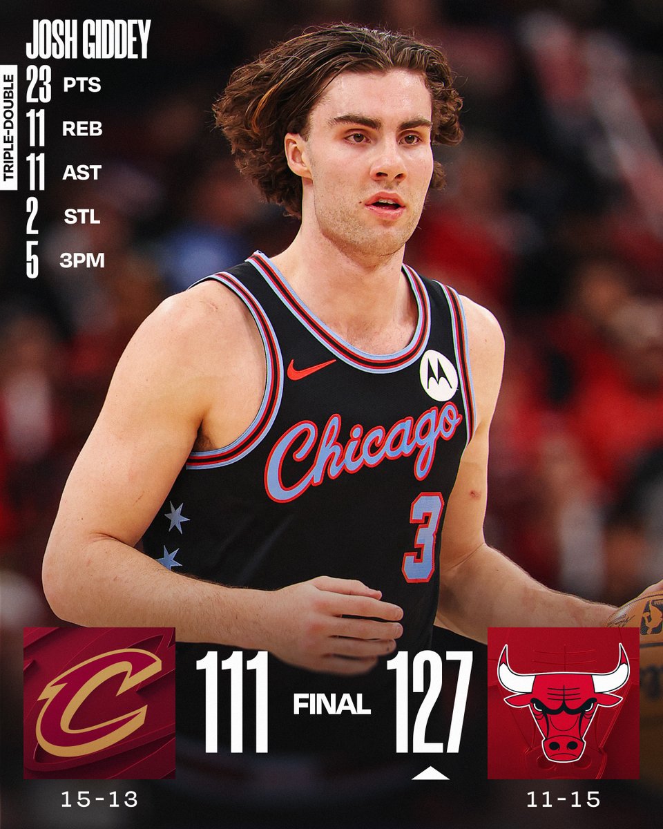 虎撲12月18日訊 NBA官方賬號報道,約什-吉迪成為公牛隊史首位達成三雙外加命中5記三分的吉迪記分球員。